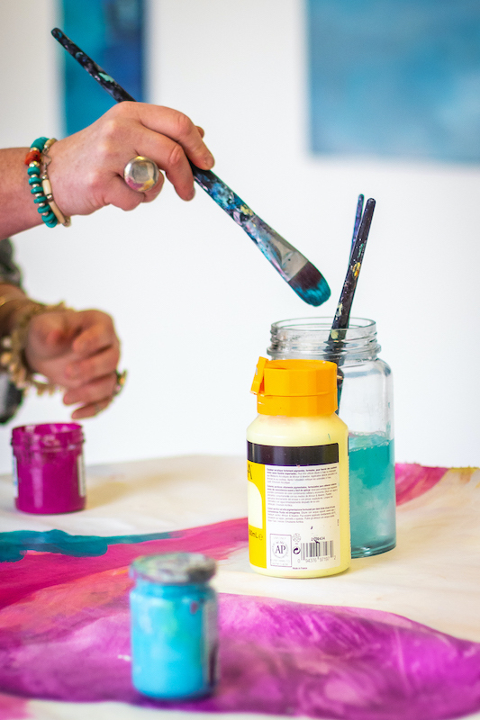 When painting, it's impossible to think about anything else other than just being "in the now." That’s my favorite time—when it all turns quiet. After the final step (when the piece is dried and done), I take a step back and it's like stepping into reality again.