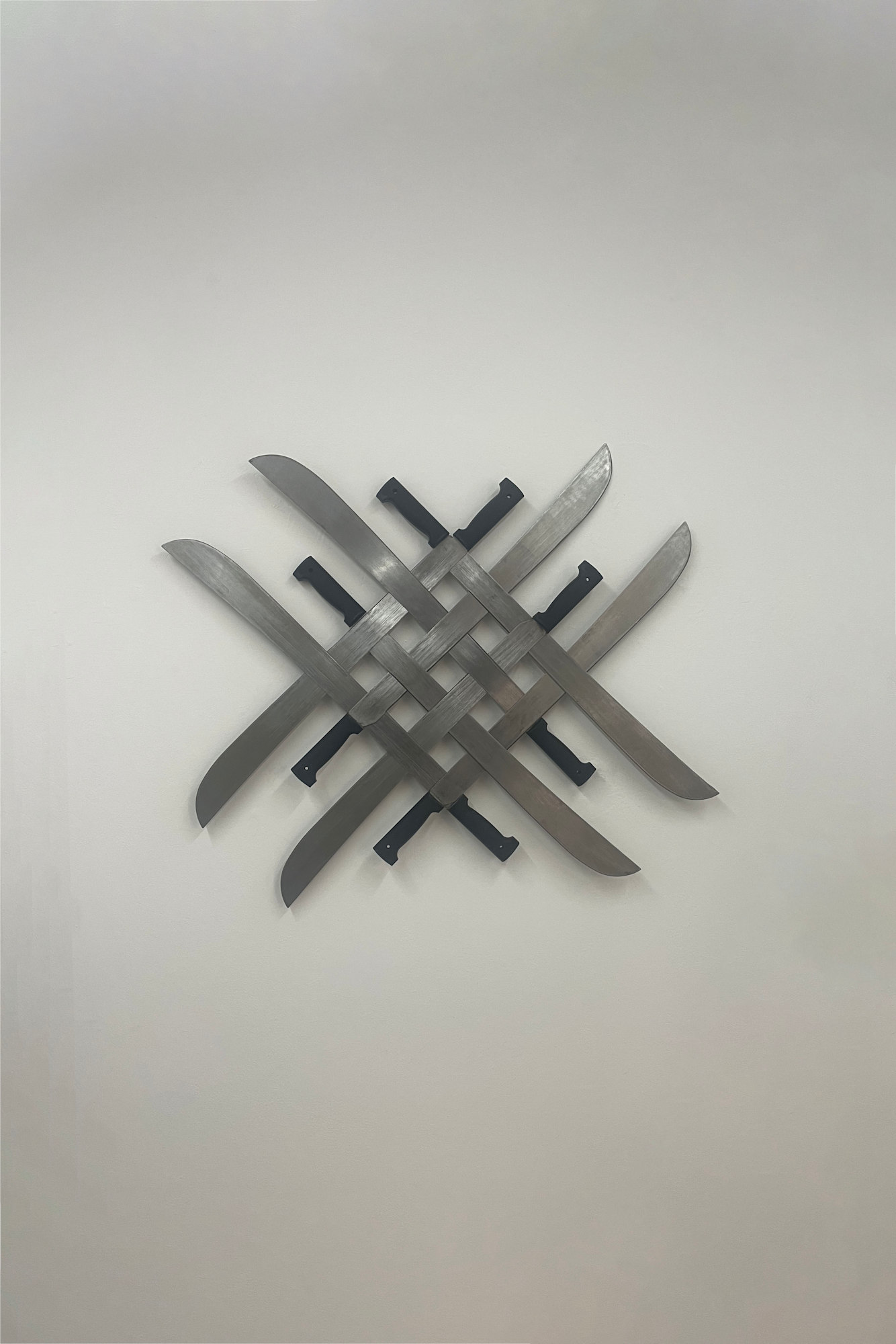 Esta obra forma parte de una nueva serie titulada “El deseo de serenidad frente al implacable rumbo natural de la condición humana” hecha a partir de machetes tejidos que retoman la noción de escudos de armas y el carácter de herramienta, arma y símbolo de clamor de justicia del machete para entrelazar una estructura de metáforas proponiéndolos como instrumentos de diversas intenciones o leitmotivs para ser empuñados.