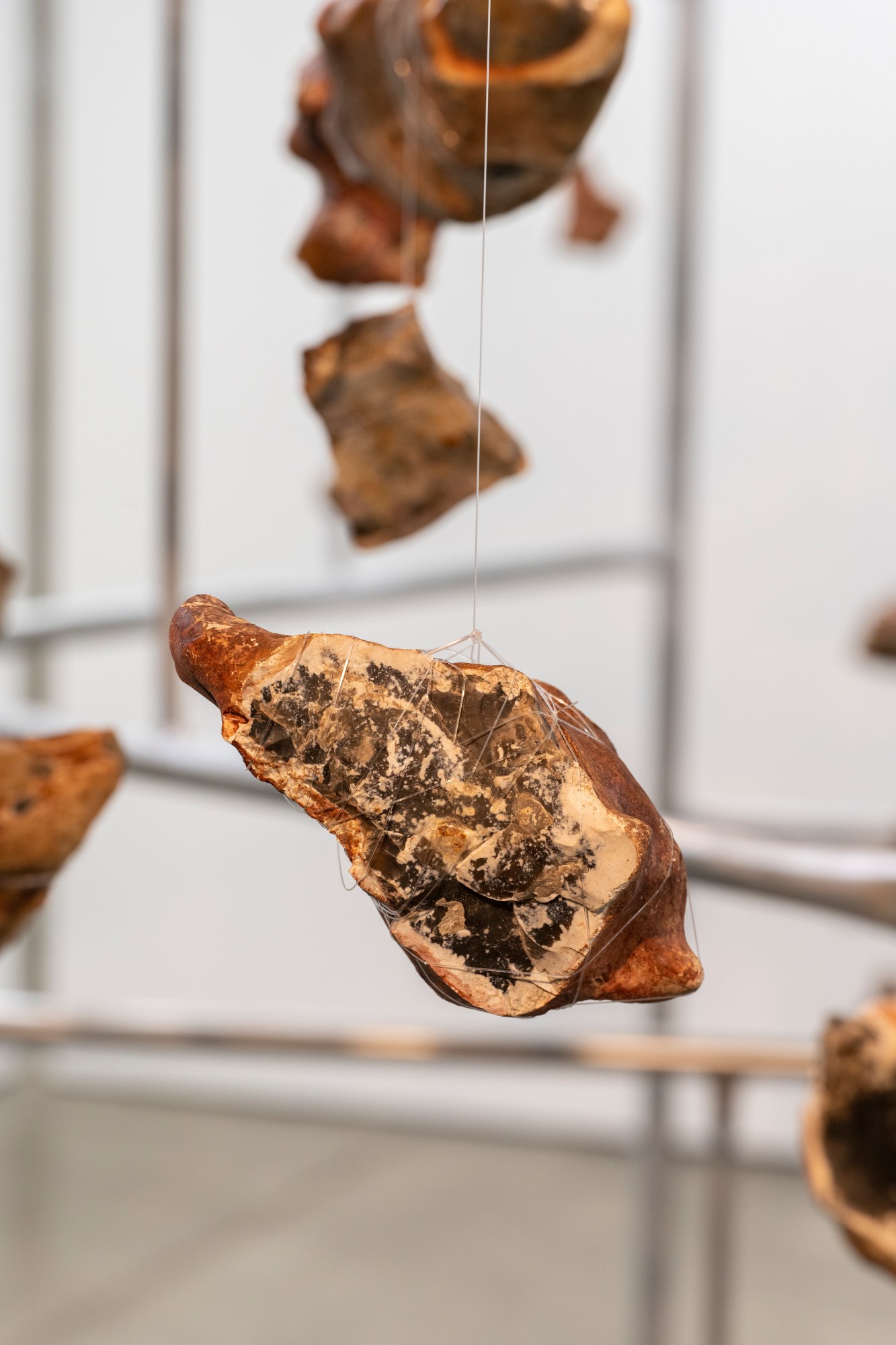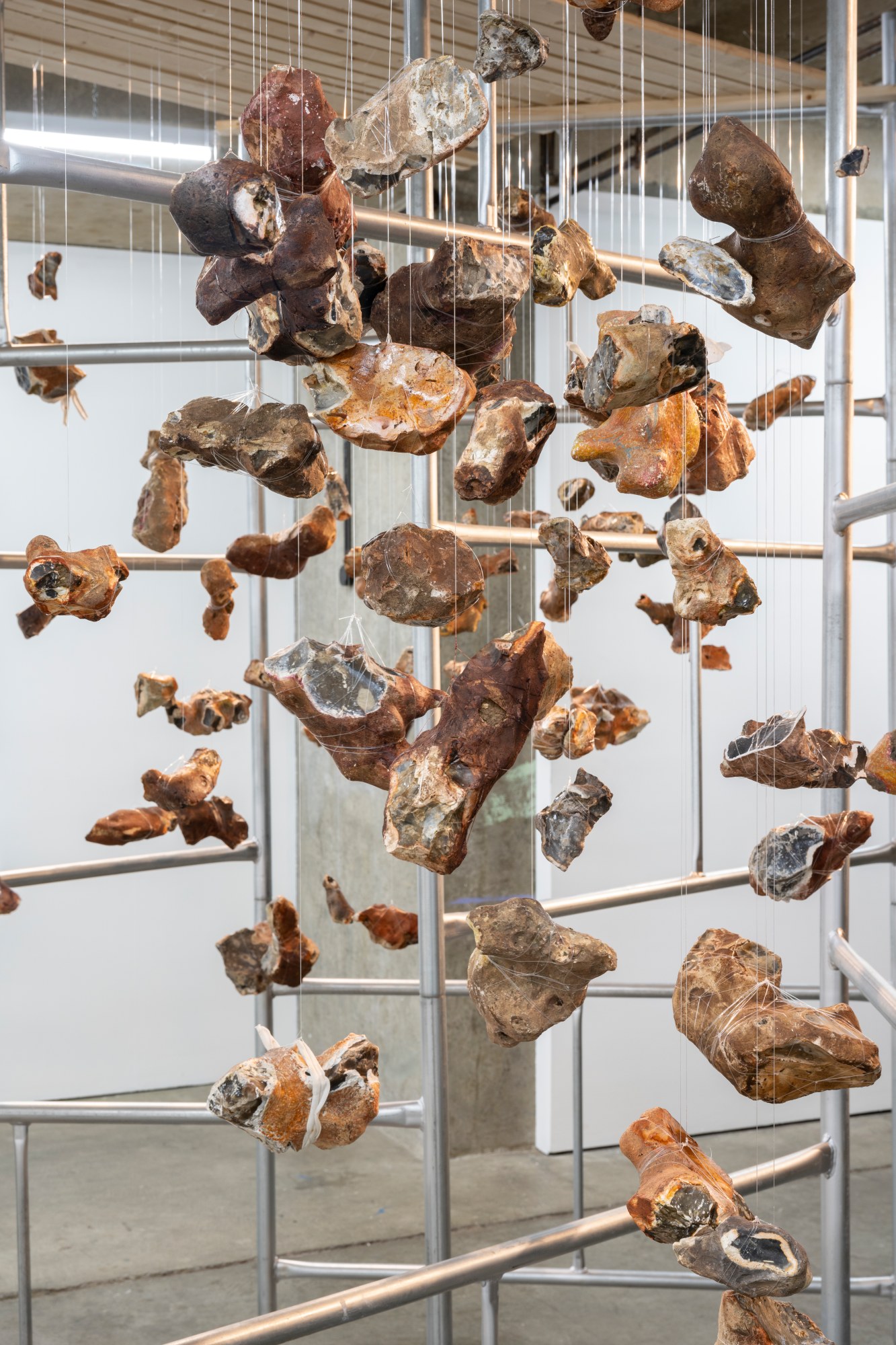 These flints are suspended on a structure that can be understood as an abstraction of the British Empire. Encountering it can give a visual for thinking aloud about Empire.