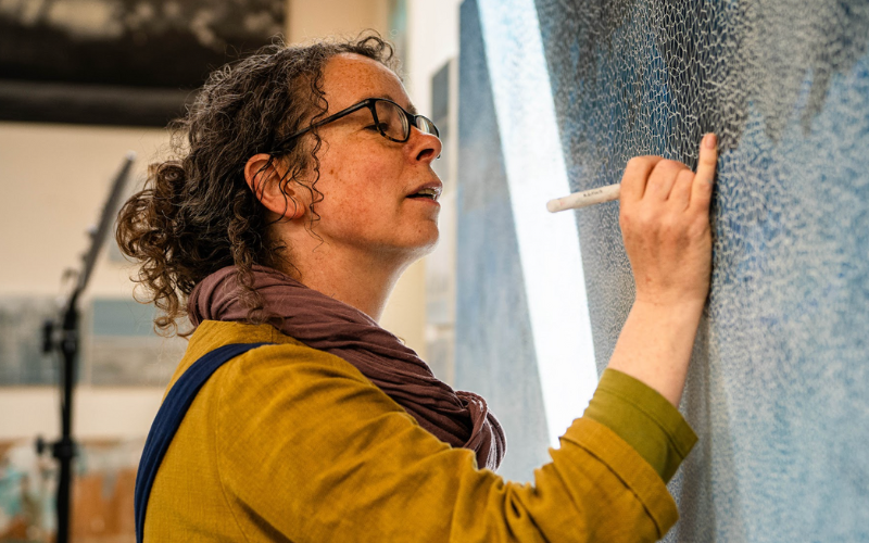 Samantha Clark working on a large piece in her studio. Photo courtesy of the artist