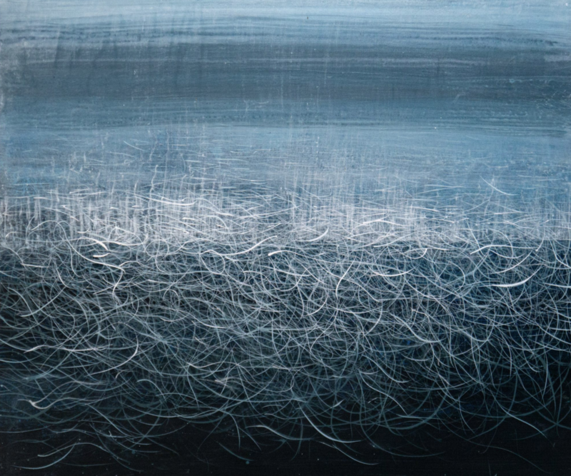 Samantha Clark’s work moves at a different pace than her subject. Water is constantly shifting, but her process insists on staying put. Long hours. Simple marks. Built up one layer at a time. It's an intentional contrast.