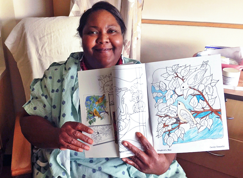 What changed with COVID was how the artists delivered the much-desired art projects. Gifts of Art partnered with floor nurses to deliver art kits and coloring books to patients when they were restricted from the floors. Nurses also helped facilitate Zoom visits with patients. Artists created fun and easy instructional videos for patients on how to make various art projects contained in the kits. They also turned their attention to supporting staff with art activities and music to help relieve stress and provide for a creative pause when possible.
