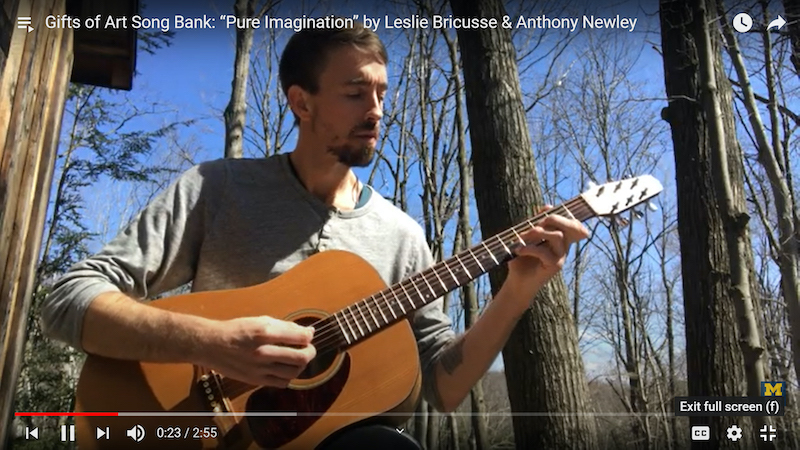 With COVID restrictions, that was not possible for many months, so the Gifts of Art program partnered with Project: Music Heals Us to create real-time virtual music experiences for patients and staff. They also recorded and uploaded favorite songs and performances to playlists on the Michigan Medicine YouTube channel. Patients and staff could listen and experience the calming sensation of music from their computer or mobile device.