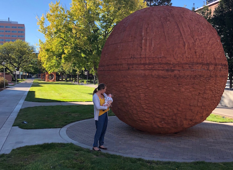 Me and Odin in front of "Corpus Collosum" by Thomas H. Sayre, on the Anshutz Medical campus, next to Children's Hospital Colorado.
