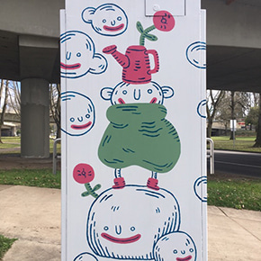 Polygeists are jolly imaginary ghosts who inhabit all matter. I wanted to invoke a feeling of happiness and warmth to the environment to whoever might pass the mural by.