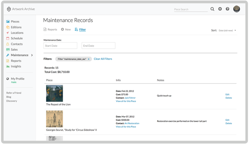 Online art collection management systems like Artwork Archive are easy to implement and manage. With your artworks and financials all in one place, you can easily track your values, condition reports, and appraisals. That way you have information available immediately when you need it.