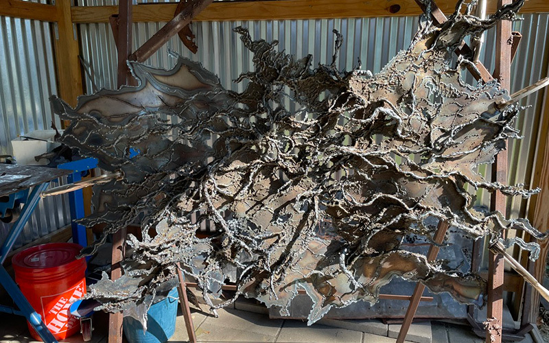 Featured Artist Marieken Cochius’ large, welded artworks are detailed and intense. Like a root system unearthed from the ground, or an eddy swirling as the tide comes in, her metal pieces feel like energy flowing.